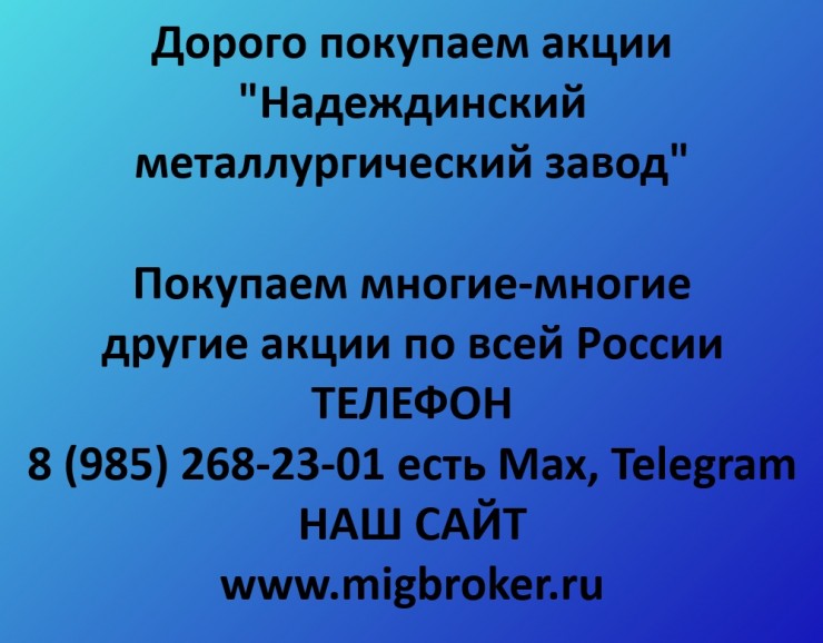 акции Надеждинский металлургический завод, продать акции Надеждинский металлургический завод, цена акций Надеждинский металлургический завод, стоимость акций Надеждинский металлургический завод, выкуп акций Надеждинский металлургический завод, МигБрокер, продажа акций Надеждинский металлургический завод, куплю акции Надеждинский металлургический завод, оценка акций Надеждинский металлургический завод