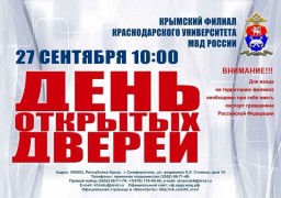 27 СЕНТЯБРЯ 2025 года в Крымском филиале Краснодарского университета МВД России состоится "День открытых дверей". МЕСТО ПРОВЕДЕНИЯ: г. Симферополь, ул. Академика X. X. Стевена, 14 (вход со стороны ул. М. Залки). Начало в 10.00.